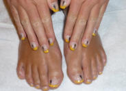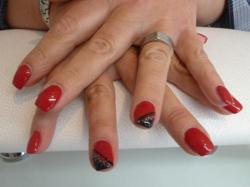mit Gel auf den Nagel aufgetragen und hält ca. 6 – 8 Wochen.