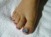 den Fussnägeln. Verschiedenen Farben, Formen, Strasssteine,